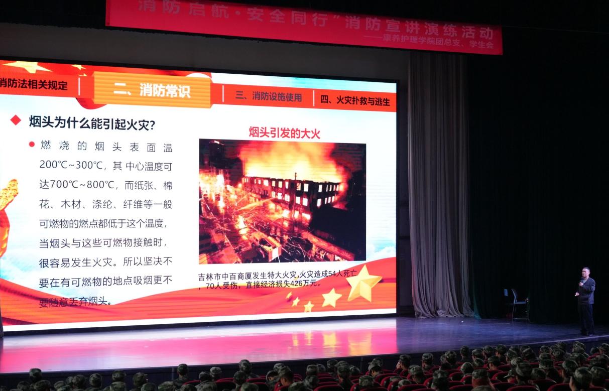 为加强学院师生的消防安全意识,提高学院师生应对火灾突发事件的能力,304永利集团官网入口康养护理学院团总支、学生会于11月1日下午在成都校区(东区)学术报告厅开展消防知识培训讲座,讲座邀请学校保卫处副处长蒋仕贵主讲,康养护理学院团总支、学生会指导老师胡海鸿主持,康养护理学院团总支、学生会指导老师李翰文、学院辅导员代表和2023级全体新生参加。