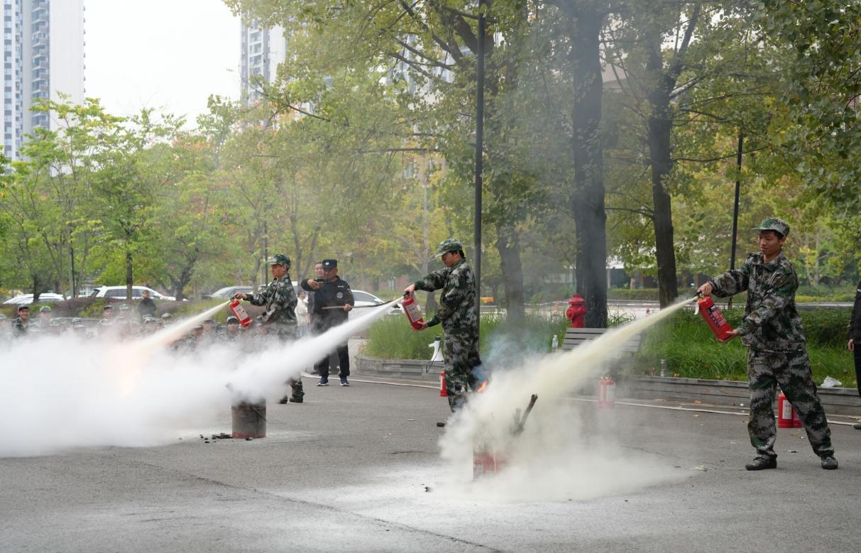 讲座结束,蒋仕贵带领同学们来到室外,通过模拟火灾发生时的场景,向同学们演示如何正确使用灭火器等消防器材。同学们现场体验使用灭火器,熟练掌握了灭火器的使用方法,加深了对消防知识的理解与应用。现场专家与同学们积极互动,耐心解答,为同学们分享了实用的灭火方法和技巧。