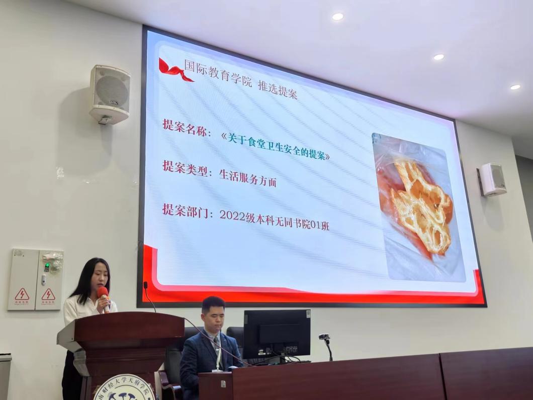 随后大会选举了国际教育学院第二届中国共产主义青年团团员代表大会提案。由学生代表推选提案,学生提案通过筛选最终提案为《关于食堂卫生安全的提案》及《关于学院水质问题的提案》,并通过投票选出上报提案。