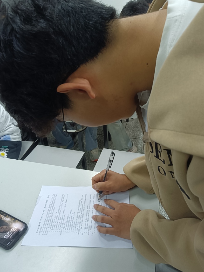 学生签订“争做文明大学生、做好自我管理“倡议书