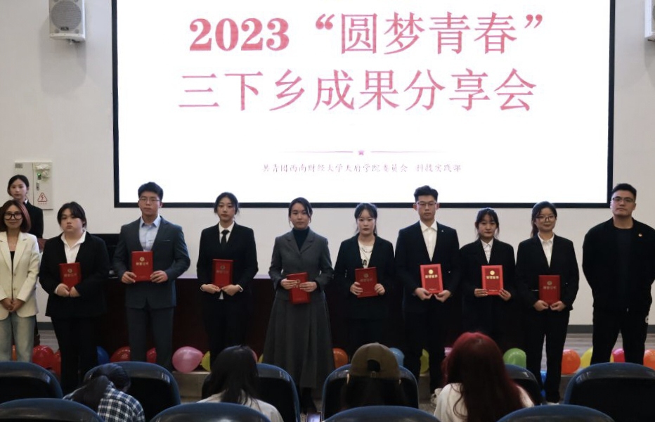为深入学习宣传贯彻习近平新时代中国特色社会主义思想,全面贯彻落实党的二十大精神,深入总结交流学校暑期“三下乡”社会实践经验,选树典型示范,发挥育人实效,304永利集团官网入口团委、校学生会科技实践部在成都校区(东区)238教室举办了2023年暑期“圆梦青春·三下乡”优秀团队实践成果分享会,团委副书记朱李、康养护理学院团总支、学生会指导老师胡海鸿、艺术与传媒学院团总支、学生会指导老师张元辰出席本次活动。