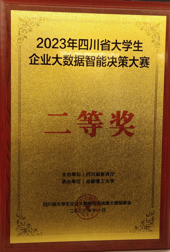 11月10日,由四川省教育厅主办,成都理工大学承办,金蝶精一信息科技服务有限公司技术支持的2023四川省大学生企业大数据智能决策大赛省赛落下帷幕。会计学院刘美伊、蔡燕、欧月芹、曹瑾枫、金桐、范明哲等18位同学,在学院教师付晨和曾帅带领下前往成都理工大学参赛,最终在本科组斩获四川省二等奖1项、四川省三等奖1项、四川省优秀奖1项,高职组斩获四川省二等奖1项、四川省三等奖1项、四川省优秀奖1项。