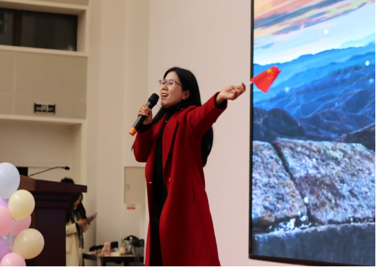 晋级赛结束后,李金玲老师登台清唱了一首《我和我的祖国》。歌声里满怀祝福和期许,红旗中舞动着热爱与坚守。“我和我的祖国,一刻也不能分割。”作为新时代的青年,大学生们理应不忘初心、牢记使命,为实现中华民族伟大复兴而奋斗努力!
