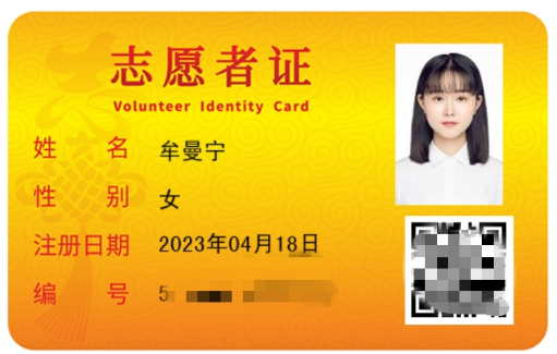 牟曼宁志愿者证