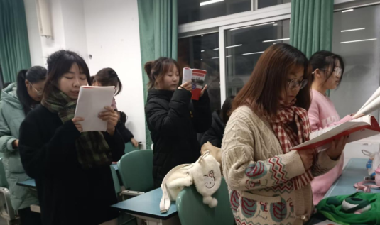晨读正式开始后,有的同学大声阅读英语文章、背诵英语词汇,增强对语言的感悟力,努力提升语感,逐渐沉浸于语言的世界中,为即将到来的大学英语四六级考试做准备;有的同学拿出专业书籍,通过大声诵读抵抗困倦,通过书写、做符号强化记忆,调动所有感官、充分利用清晨时光进行高质量学习;大一的部分同学认真阅读并识记《学生手册》的相关纪律规定及评奖评优条件,为即将开展的入学考试做准备……