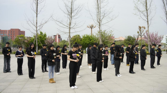 接着,全体人员肃立,向革命先烈默哀一分钟。学生党员代表整齐列队,神情肃穆,缓缓走向英烈纪念碑,向先烈们献上鲜花。在这个庄重的时刻,师生们的心灵与先烈们紧紧相连,共同感受这份深深的哀思和无尽的敬仰。