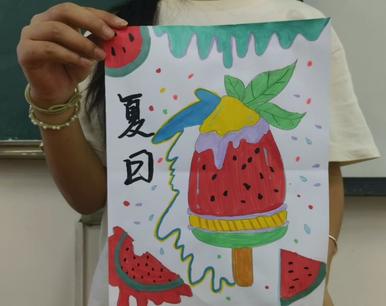 诗歌是中华民族传统文化的重要组成部分,通过拼接诗歌活动,学生可以更好地感受、传承中华优秀传统文化。本次活动,参与学生首先组成不超过四个人的队伍,然后由成员合作完成拼接、写作、绘画,最后在卡纸上呈现一首完整的夏日诗歌。