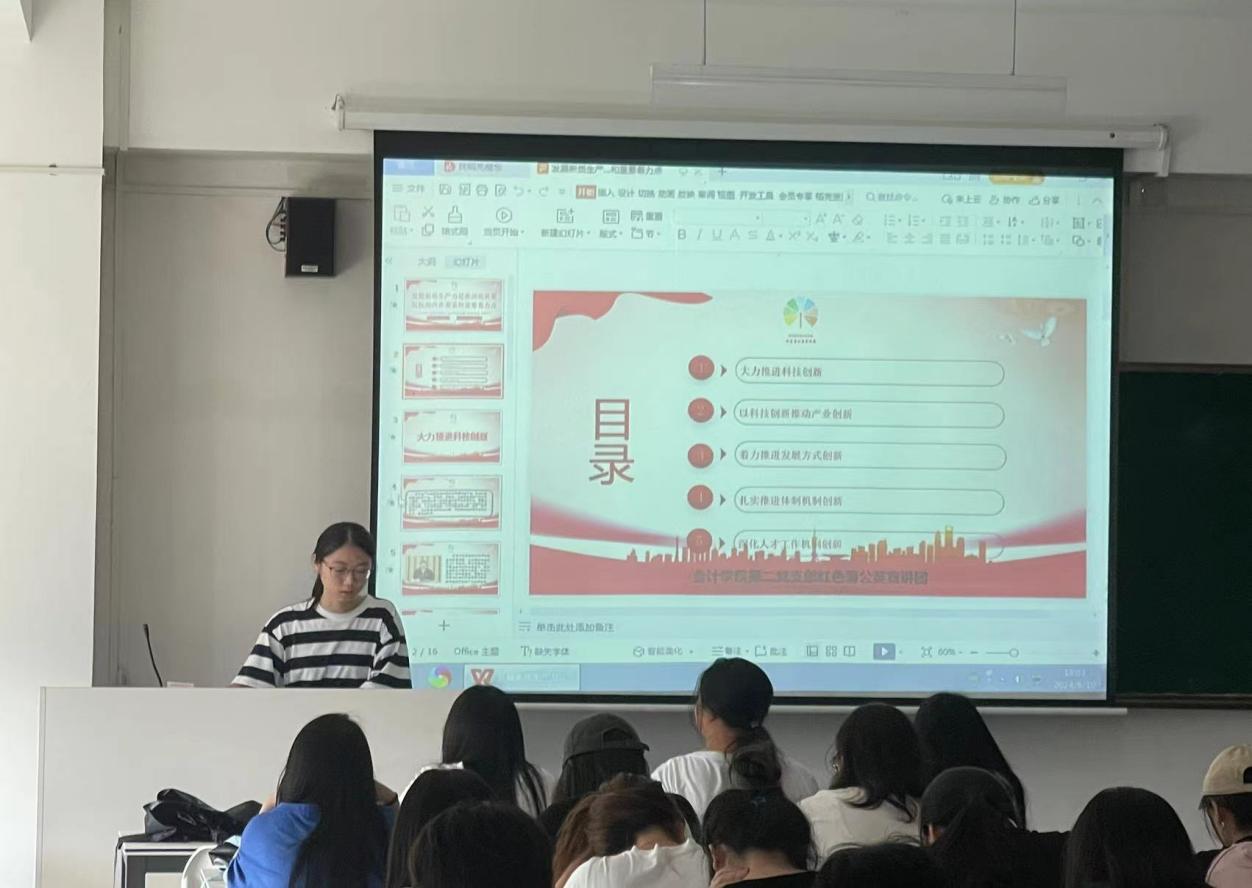 力推新质生产力,紧抓高质量发展。6月10日,304永利集团官网入口会计学院第二党支部红色蒲公英宣讲团在各班晚签到班会组织开展“发展新质生产力是推动高质量发展的内在要求和重要着力点”线下宣讲活动,会计学院第二党支部全体同学参加。