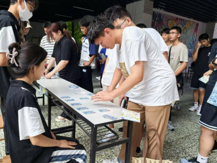 活动项目包括“盲人摸‘象’”“答非所问”“听歌识曲”“扑克消消乐”“形容词猜身份”和“正话反说”等游戏。每个活动都有相应的规则和盖章条件,新生们需要成功完成游戏才能获得印章。这些游戏不仅考验了新生们的智慧和反应能力,此外还为他们提供了一个相互认识的平台。