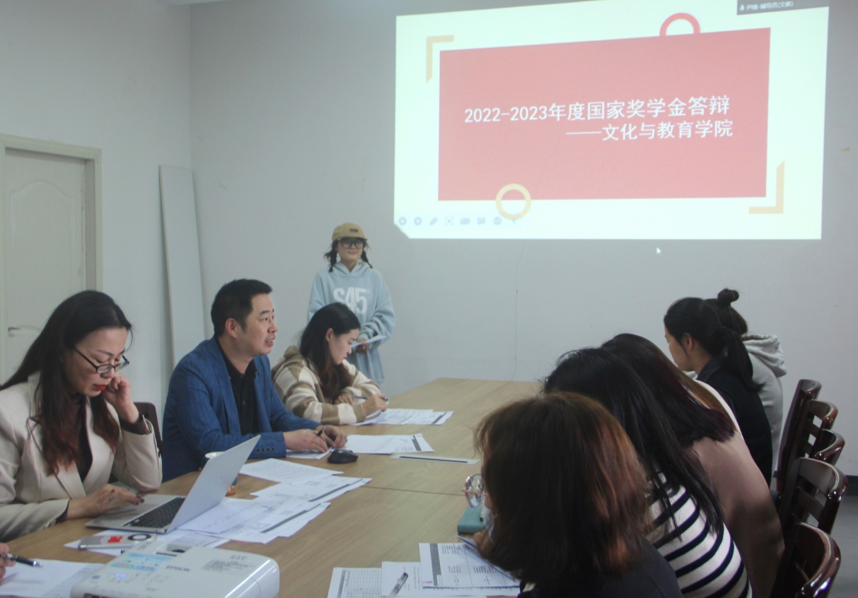 为了加强学院学生同辈学习与交流,提供一个展示自我的平台,文化与教育学院于10月9日下午在三教会议室和腾讯会议线上线下同时举行了2022-2023学年国家奖学金申请推选答辩会。此次答辩会由孙悦主持,文化与教育学院党总支书记邓毅、执行院长史正刚、副院长史海静、学工办主任王丹等十一位老师出席并担任评委,学生评审团及13位候选人参加。