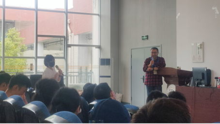 讲座开始,冯新荣通过案例分析让同学们发表自己的看法,与同学们积极地交流互动。随后,冯新荣针对“毕业焦虑症”做出解释并讲解了形成这种心理的原因,帮助同学们思考和学会应对该心态带来的问题。