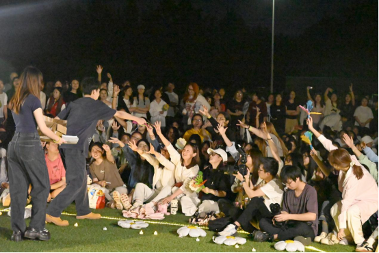 在趣味互动环节,大家踊跃参与,在轻松愉悦的氛围下,同学们或围坐草坪,或随音乐摇摆,尽情享受着春日与音乐交织的美好时光。