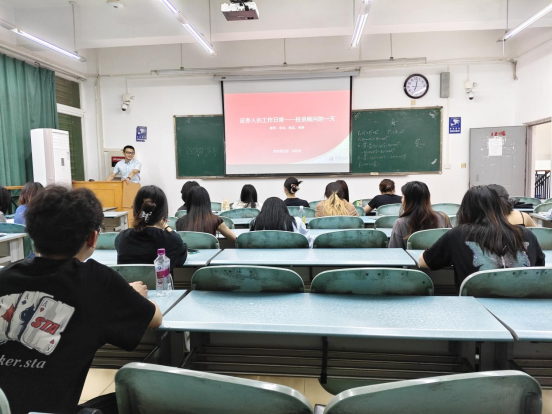 4月20日,第二届华西证券实训班第10期于1205教室如期开展。此次课程聚焦《证券人的工作日常——投资顾问的一天》这一主题,学院邀请行业资深投资顾问肖桂明作为主讲嘉宾。肖桂明采用理论讲解与实践案例剖析相结合的方式,为学员们全面且深入地解读投资顾问这一职业的内涵与发展路径,助力学员筑牢职业认知根基,提升专业素养水平。