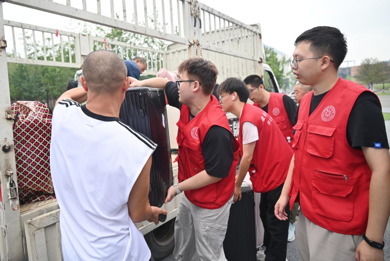 迎新现场,各点位功能明确,分工细致。检录处,老师们仔细核对新生的身份信息和录取材料,耐心解答疑问,确保流程高效顺畅;行李转运处,志愿者认真清点、记录新生的行李信息,细致贴上标签;校园内,随处可见志愿者忙碌的身影,他们主动接过新生的行李,搬运至转运车上。迎新工作环环相扣,有条不紊,新生及家长感受到浓厚的关怀和归属感。