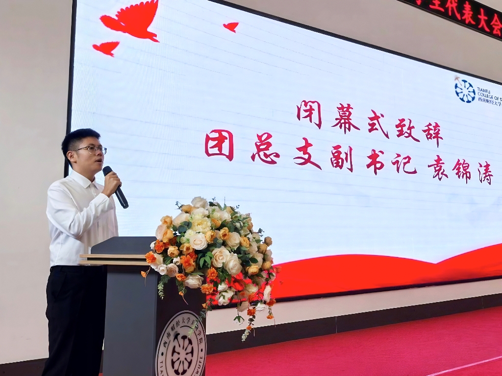 会议最后,袁锦涛致闭幕辞。他表示本次大会旨在深入学习贯彻党的二十大精神,系统总结学院团总支、学生会的工作成果,共谋未来发展蓝图。他希望全体代表继续发扬优良传统,团结引领广大同学扎实推进各项任务目标,并将大会精神广泛宣传、落到实处,把会议共识转化为前进动力,以坚定信念书写无愧于时代的青春篇章。