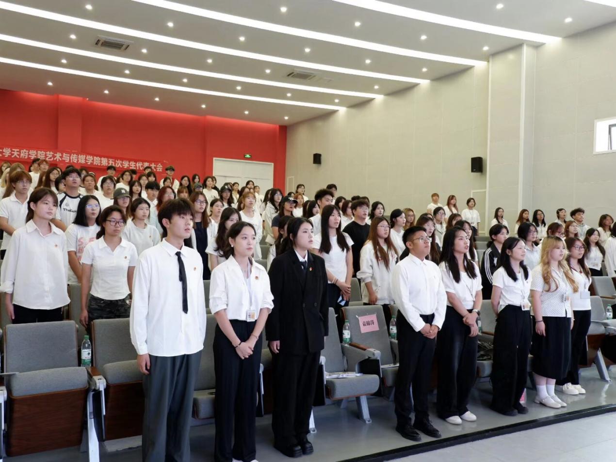 为明确学生工作高质量发展方向,助力青年学子全面成长成才,9月29日,艺术与传媒学院在成都校区(东区)238教室与德阳校区C203教室同步召开第五次学生代表大会。艺术与传媒学院分党委副书记马俊,团总支书记张元辰,副书记袁锦涛,团总支、学生会指导老师李涵、李翠翠、植洁、陈佳慧以及全体学生干部共同参会。本次大会以畅通师生沟通渠道、促进学生工作与学院发展同频共振为目标,致力于引导广大艺传学子坚定理想信念,锤炼责任担当,磨砺奋斗精神,努力成长为有理想、敢担当、能吃苦、肯奋斗的新时代青年,为学院高质量发展汇聚青春智慧、贡献青春力量。