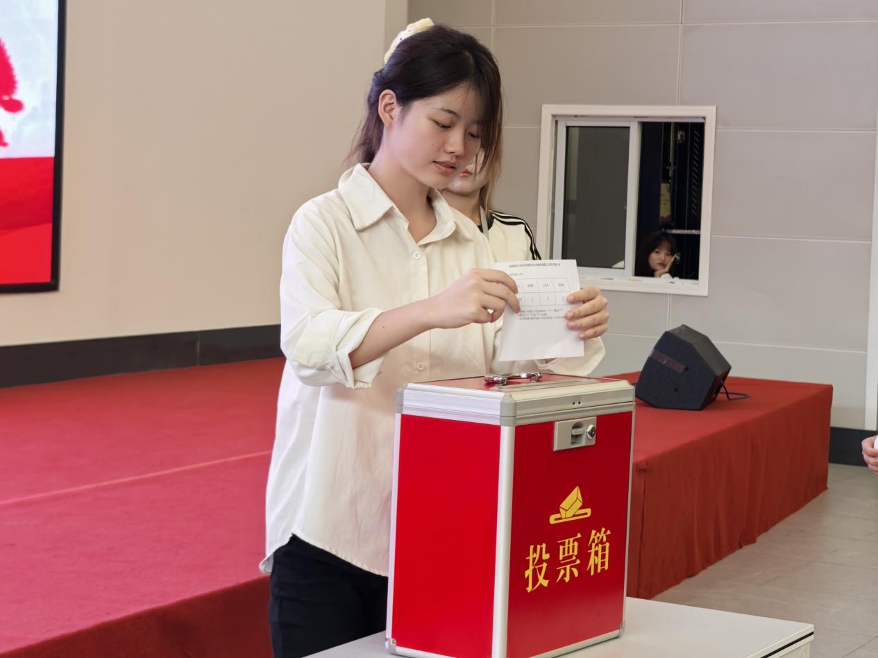 随后,张元辰就本次换届选举制度作出说明,为选举程序的规范有序开展提供了明确依据。在接下来的投票环节中,李翠翠组织与会学生代表有序参与,全程秉持公平、公正、公开原则,切实保障每位代表的民主权利。经现场投票与结果统计,温瑞熙当选为艺术与传媒学院第七届学生会主席,王忆星、李佳阳当选为副主席。