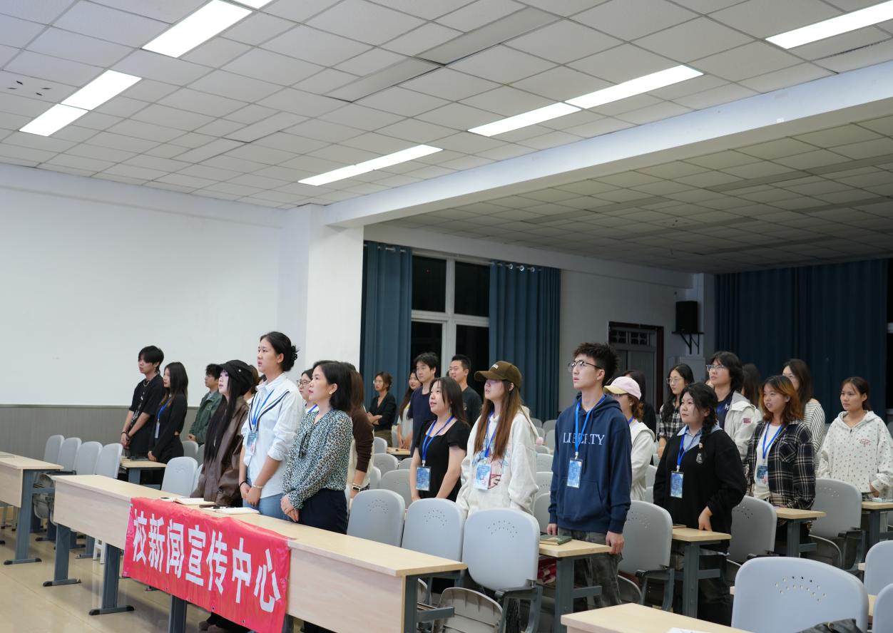 罗文在讲话中首先提出对各部门新成员的加入表示热烈欢迎,向新成员们介绍了校新闻宣传中心的组织架构。她指出,做好宣传工作,需始终秉持 “专、热、真” 三大核心:其一为 “专”,要深耕宣传领域,锤炼专业素养,以精准的视角把握传播规律,用扎实的业务能力打造高质量宣传内容;其二为 “热”,要怀揣热忱之心,以饱满的热情洞察受众需求,用富有感染力的表达引发情感共鸣,让宣传工作兼具温度与影响力;其三为 “真”,要坚守真实底线,秉持诚信原则,以客观的态度呈现事实本质,用真诚的话语赢得信任。她提到,工作中的挑战在所难免,但务必坚守初心,勇于承担责任,持续向前;期待大家在校新闻宣传中心这个平台上积极学习,充分展现个人才华;坚定自信,不断创作出新颖独特的作品。