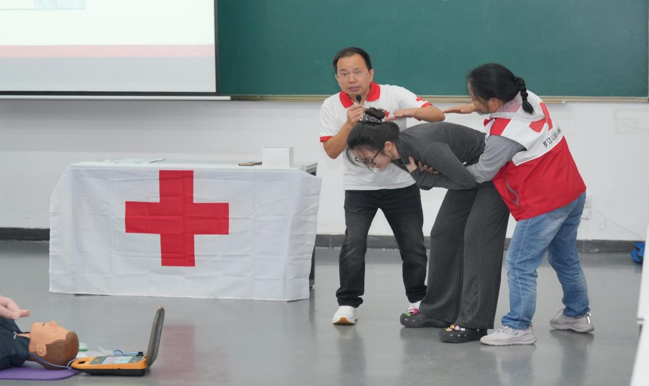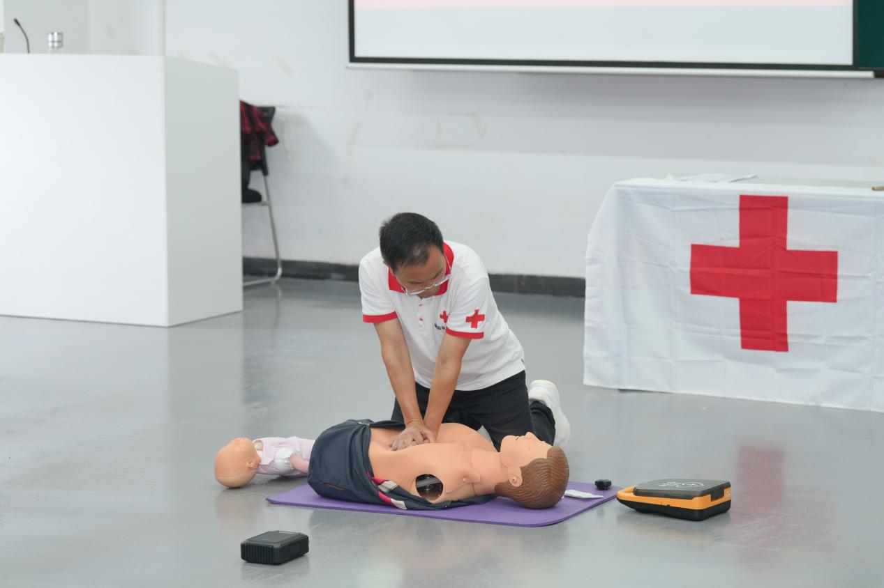 本次培训采用“理论讲授+实操训练”的教学模式,肖宾以真实的急救案例导入,围绕红十字运动起源、现场救护原则、心肺复苏操作要领、自动体外除颤器(AED)使用等核心内容展开系统讲解。他特别强调了“黄金四分钟”在心搏骤停救援中的关键作用,并通过分步演示、错误纠正、情景模拟等多元化教学方法,讲解了应急救护的理论基础与操作规范。
