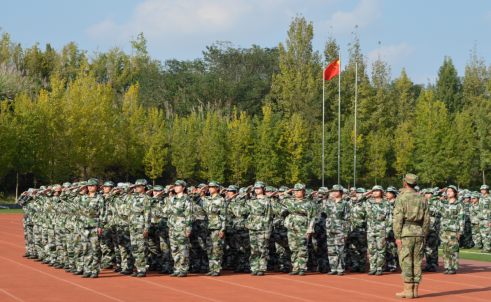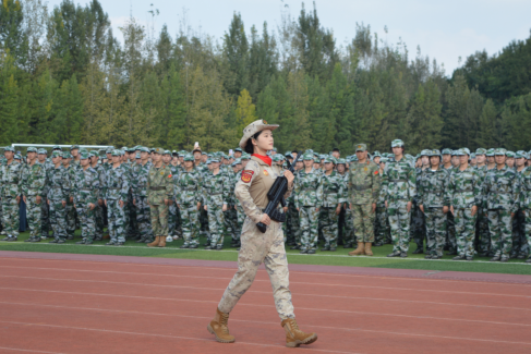 训练哨声响起,新生们身着统一迷彩服,迅速在田径场集结。清晨的第一缕阳光洒满大地,学子们整齐划一的站在操场上,在日复一日的训练里慢慢沉淀出了藏在军姿里的青春信念,比阳光更能撑起每一道挺拔的身影。迷彩服在晨光中勾勒出青春挺拔的轮廓。额间的汗水、挺拔的身姿,尽显连日来的训练成果。