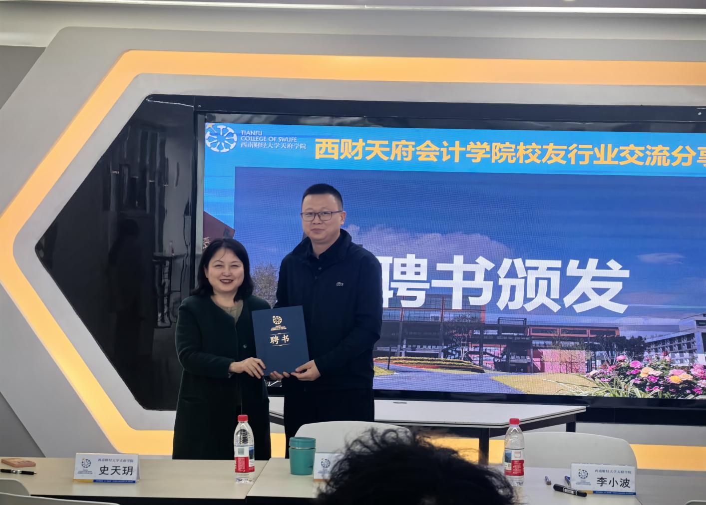 为进一步发挥校友的传帮带作用,学院特聘李小波为会计学院行业导师,陈真子为其颁发聘书,期待未来持续加强校企联动,助力学生成长。