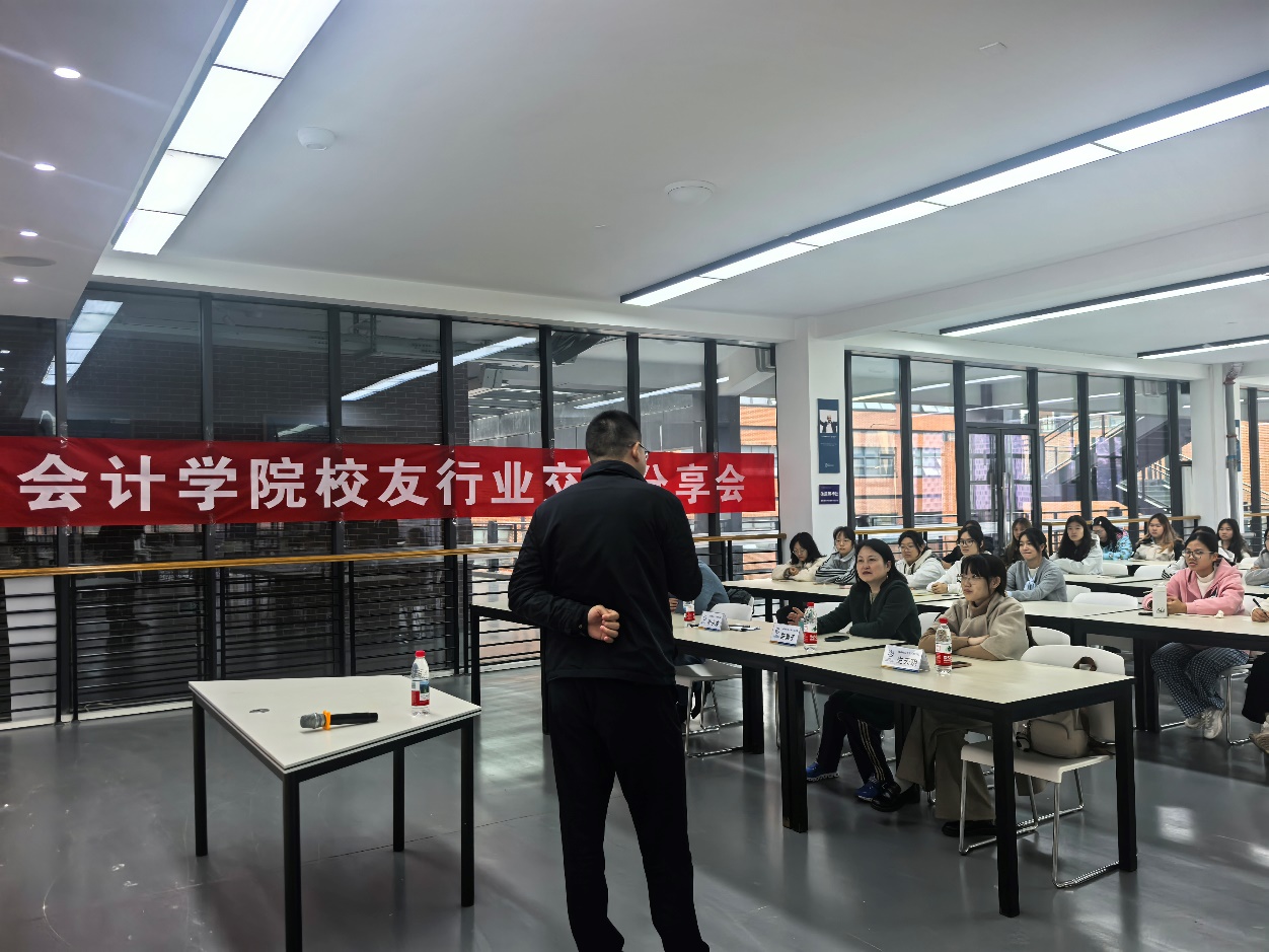 为加强校友与在校学生的交流互动,帮助学生了解行业发展趋势,11月1日上午,会计学院在德阳校区C301举办了校友行业交流分享会。本次活动由会计学院教师杨益主持,特邀优秀校友李小波进行行业分享与就业指导,会计学院院长陈真子、学校校友工作处教师周淼、由雨露、会计学院校企合作办负责人史天玥等出席活动,30余名优秀学生积极参与本次活动。