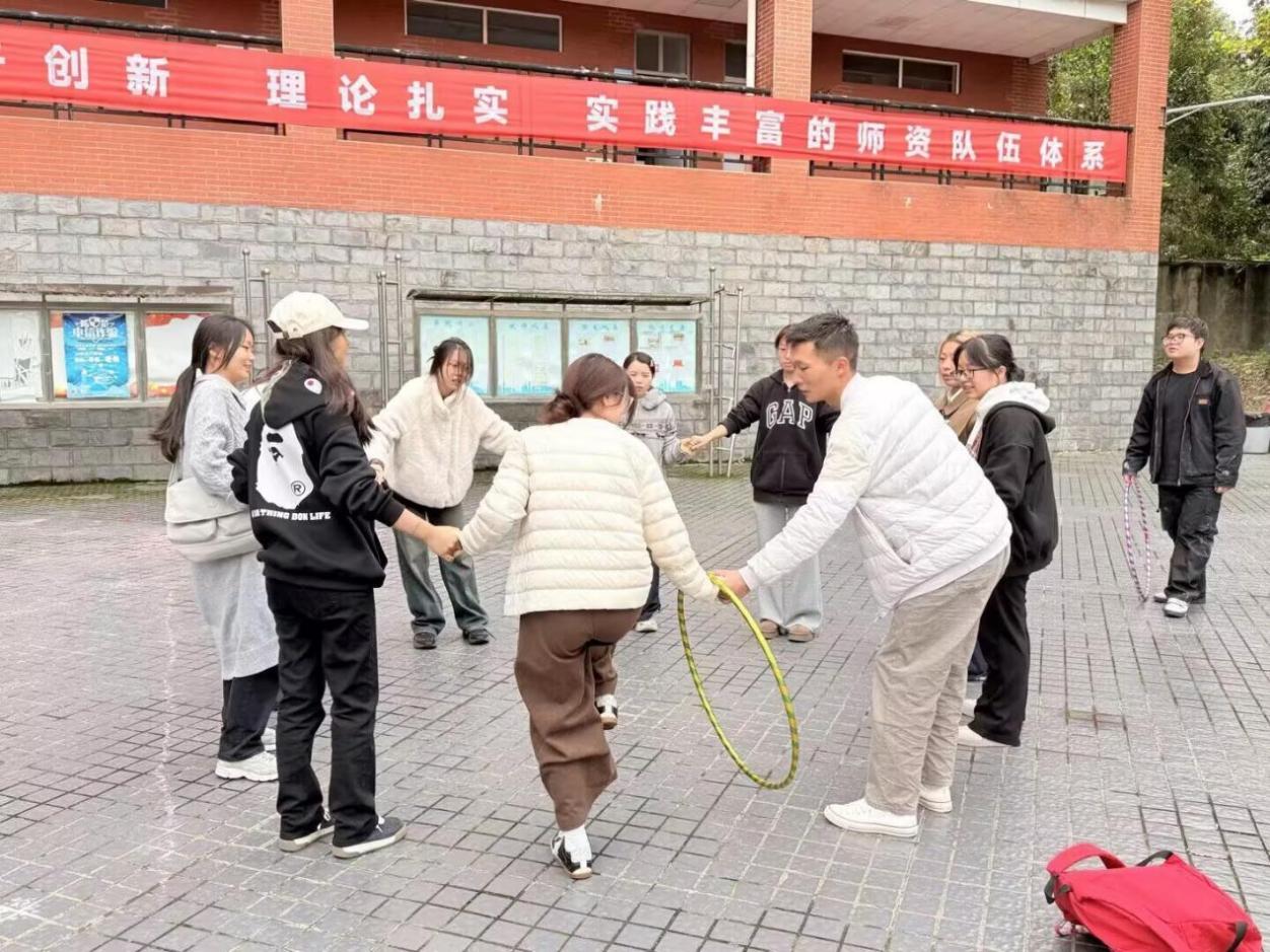 参赛队伍于翠湖广场(黄色站)集合,用“珠行万里”的挑战拉开序幕,队员们以纸板搭建的通道护送乒乓球成功通过一道道关卡。紧接着,队伍前往三教(粉色站)的“一圈到底”活动,十名队员手拉手默契配合,让呼啦圈在臂间穿梭,尽显动感活力;在四教和五教(绿色站)的“齐心协力摆造型”环节中,队员们充分发挥创意,定格出诸多趣味十足的画面,欢声笑语不绝于耳;C5楼后(紫色站)的“袋鼠跳”接力赛将现场气氛推向小高潮,队员们身着跳跃袋奋力冲刺,矫健的身影与响亮的加油声交织成活力的赞歌。最终,队伍抵达体育馆(蓝色站),在“五人四足接力”终极考验中,队员们步伐一致、齐心协力。完成所有关卡挑战后,队伍重返翠湖广场,