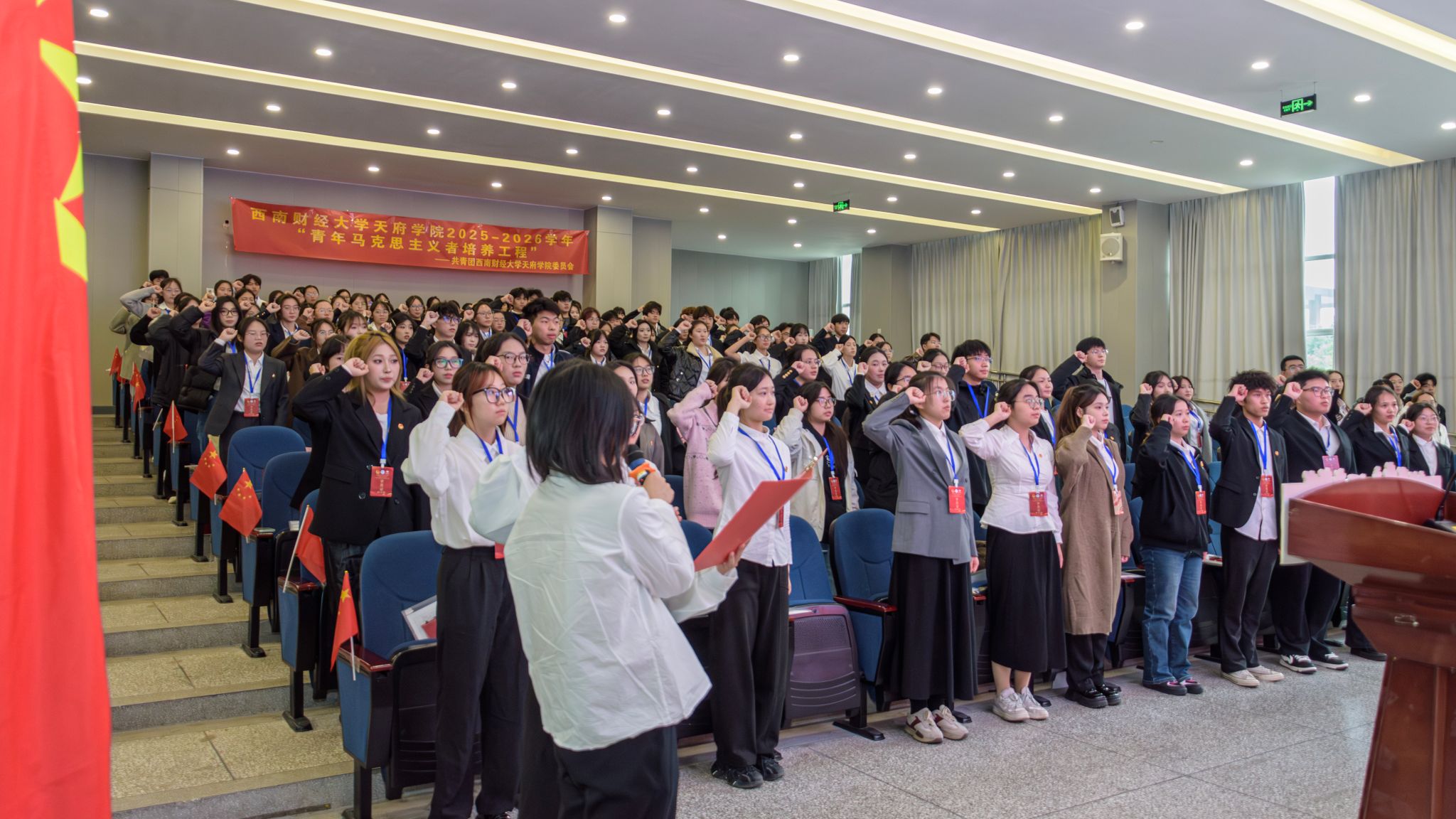 近日,304永利集团官网入口成都校区(东区)238教室举行2025-2026学年“青年马克思主义者培养工程”开班仪式。150名青年学子齐聚一堂,共同开启这场关于理想、信仰与担当的思想淬炼之旅。学校机关分党委书记蔡松伯,团委书记蒲虹宇,团委副书记朱李,艺术与传媒学院团总支书记张元辰,智能金融学院团总支书记刘海燕,康养护理学院团总支、学生会指导老师胡海鸿,国际教育学院团总支、学生会指导老师黄成智以及体育学院第三党支部书记徐晓霞出席活动,与全体“青马”学员一同见证这一重要时刻。