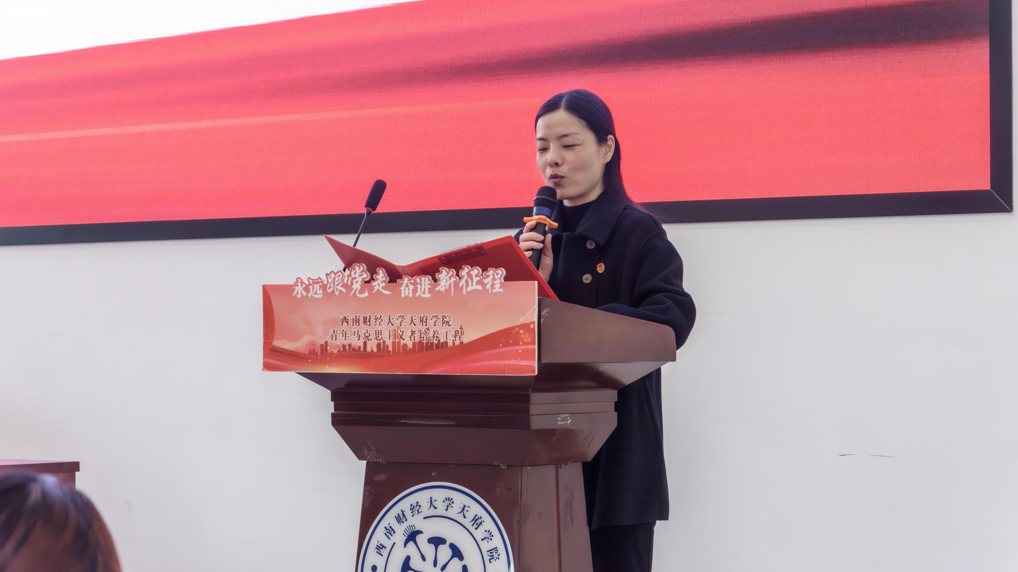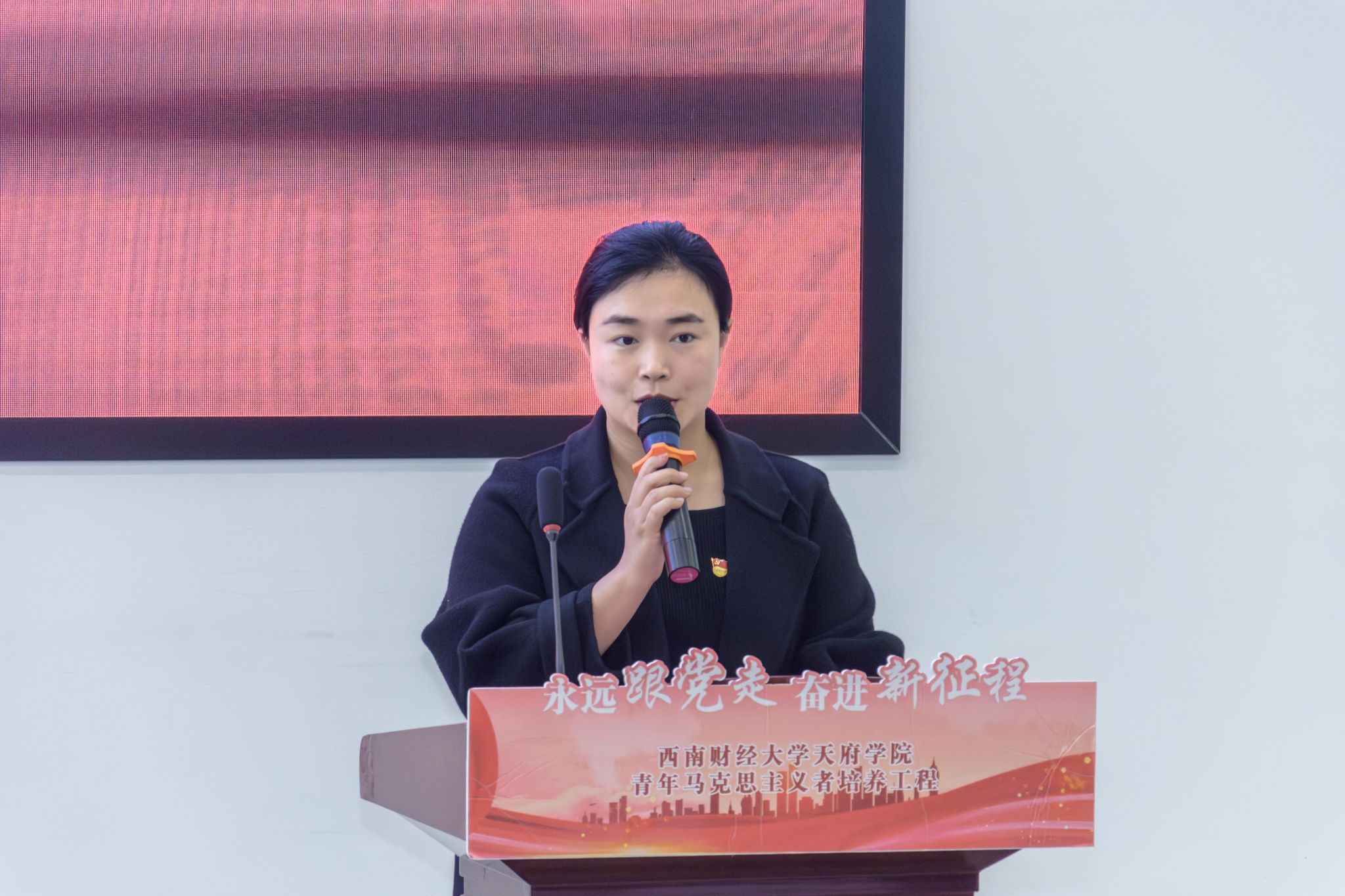 宣誓仪式结束后,蒲虹宇着重强调了学校对“青马工程”的高度重视,明确指出该工程是培育青年马克思主义者、助力学员成长成才的重要平台,此次开班仪式标志着学员成长的新起点。她要求学员深刻领悟马克思主义的立场、观点和方法,在学习、思考、实践与体悟的过程中锤炼高尚品格、增长自身本领,牢记初心使命,努力成为学校发展进程中的“排头兵”和新时代的“追光者”,将个人的成长与时代的发展紧密融合。最后,她向关心并指导这一工程的领导和老师表达了诚挚的谢意,祝愿学员能够学有所成、成长为青年骨干力量,并预祝此次培训工作顺利开展。