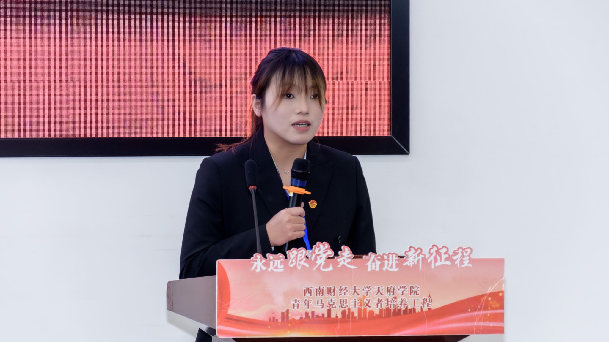 本期学员代表何俪愿结合自身感悟,分享了学习马克思主义的心得体会。她代表全体学员作出郑重承诺:将深入钻研理论知识,积极参与课程学习;同时严格遵守纪律,在交流互鉴中携手共进。最后,她祝愿本次“青马工程”培训取得圆满成功。
