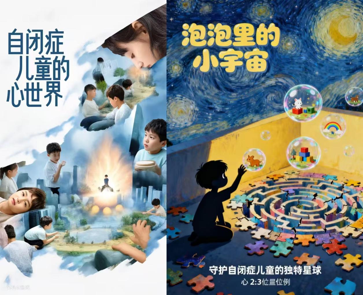 在人工智能技术日新月异的今天,AI已不再是遥不可及的高科技符号,而是成为了每个人都能驾驭的“创意引擎”。本次活动聚焦社会关系与前沿创新,设置了三大创意赛道:第一个赛道是AIGC视觉类,围绕“自闭症儿童的内心世界”主题生成海报、漫画等作品;第二个赛道是AIGC文字类,以“金融反诈”为主题进行小说、宣传文案等作品创作;第三个赛道是创新应用类,聚焦“科学与研发创新”主题,利用AI解决问题。经学院评选,各赛道涌现出多份优秀作品。