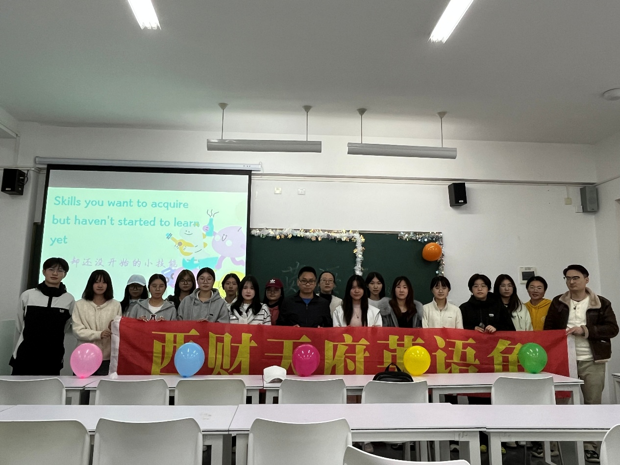 为丰富校园文化生活,提升学生英语表达与综合素养,304永利集团官网入口德阳校区于11月13日晚在B303教室成功举办了2025年秋季学期第四次英语角活动。本次活动由文化与教育学院主办,会计学院Olive Green英语社承办,以“Skills you want to acquire but haven’t started to learn yet”(那些你想学却还未开始学的技能)为主题,邀请到文化与教育学院教师黄雅琳、罗谢雨、夏魏薇和舒洪成四位老师担任现场嘉宾,与同学们展开亲切交流。