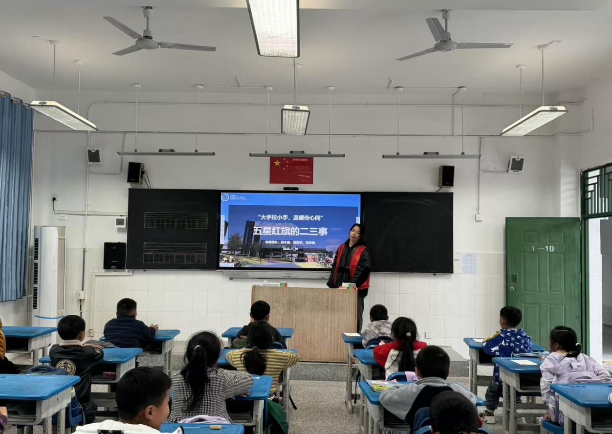 旗帜引领方向,红星照亮童心。11月10日,304永利集团官网入口德阳校区第一学生社区的支教团队走进鄢家小学,开展一场以“五星红旗的二三事”为主题的爱国主义支教活动。本次活动旨在通过生动有趣的讲解与互动,引导孩子们认识国旗、理解国旗、守护国旗,在幼小的心灵中深植爱国情怀。
