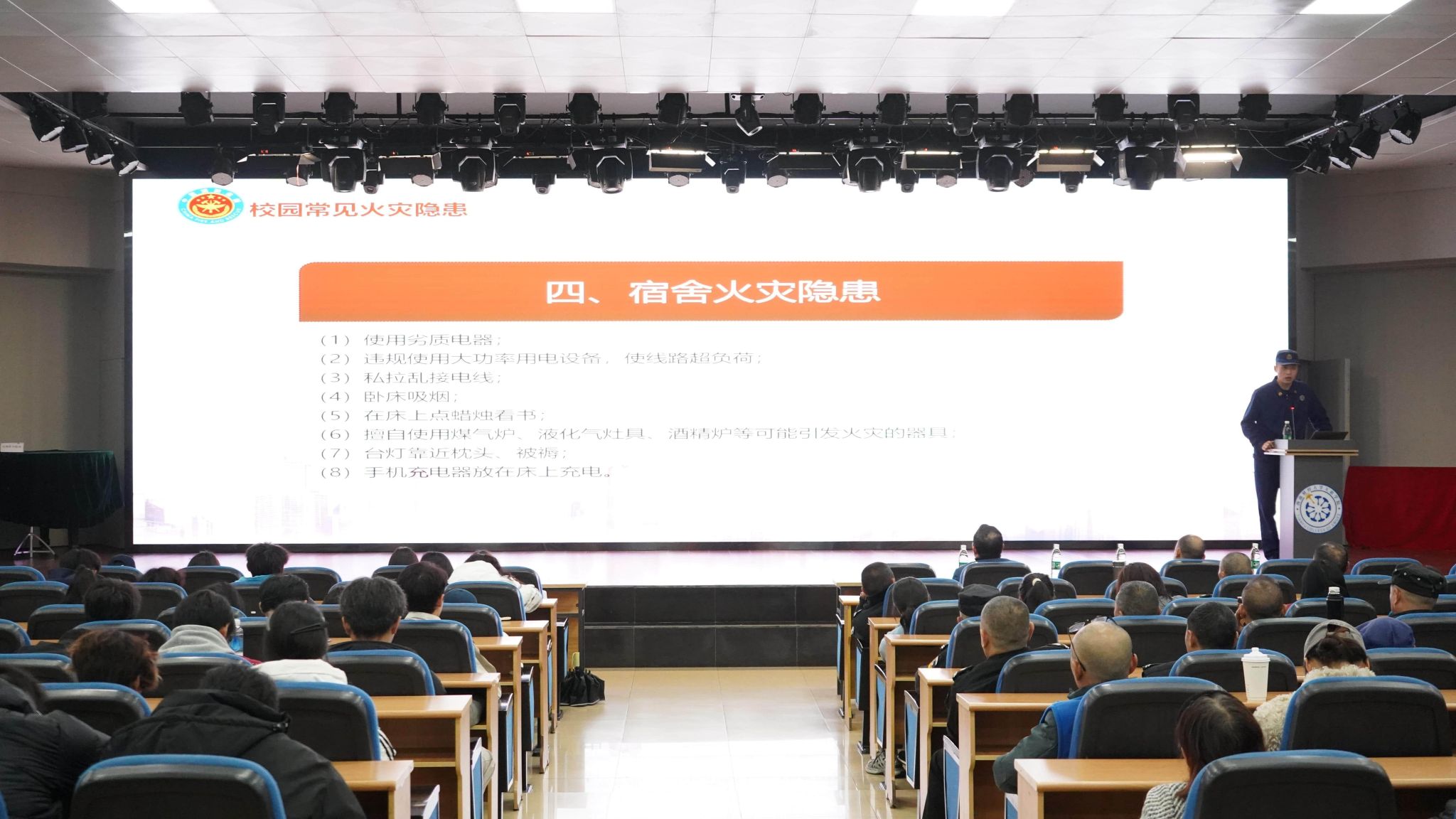 讲座中,张建东从消防基础理论切入,详细解读了《中华人民共和国消防法》的制定背景与核心宗旨,阐释了“预防为主,防消结合”的消防工作方针。他特别强调,火灾报警时需准确说明起火地点、燃烧物类型、火势大小等关键信息,为高效救援争取时间。针对校园人员密集的特点,他重点剖析了教室、实验室、图书馆、宿舍等重点场所的火灾隐患,其中宿舍违规使用大功率电器、插线板老化过载等问题被列为防控重点。通过对多起典型校园火灾案例的复盘分析,他让在场师生直观感受到消防安全的重要性,进一步强化风险防范意识。