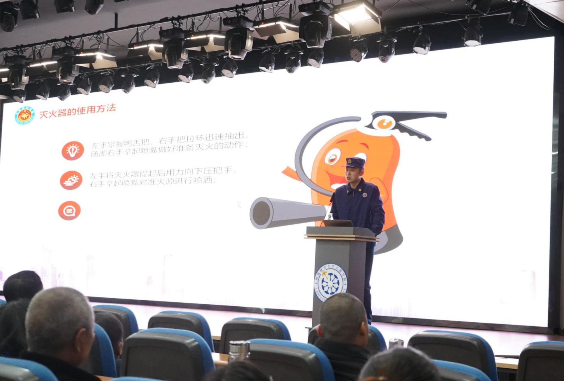此外,张建东还现场演示了干粉灭火器、二氧化碳灭火器等常用消防器材的正确使用方法,系统讲解了隔离法、冷却法等基础灭火技巧,以及火场自救、疏散逃生的核心注意事项,为后续实操演练奠定了坚实的理论基础。