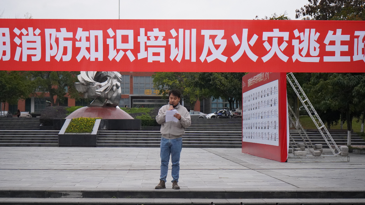 演练结束后,校长助理李锐作总结讲话。他充分肯定了本次消防知识培训与疏散演练的组织成效,以及全体师生在活动中的积极表现。他指出,此次活动不仅有效检验了学校应急管理机制的实用性,更锤炼了师生应对突发火情的实战能力。