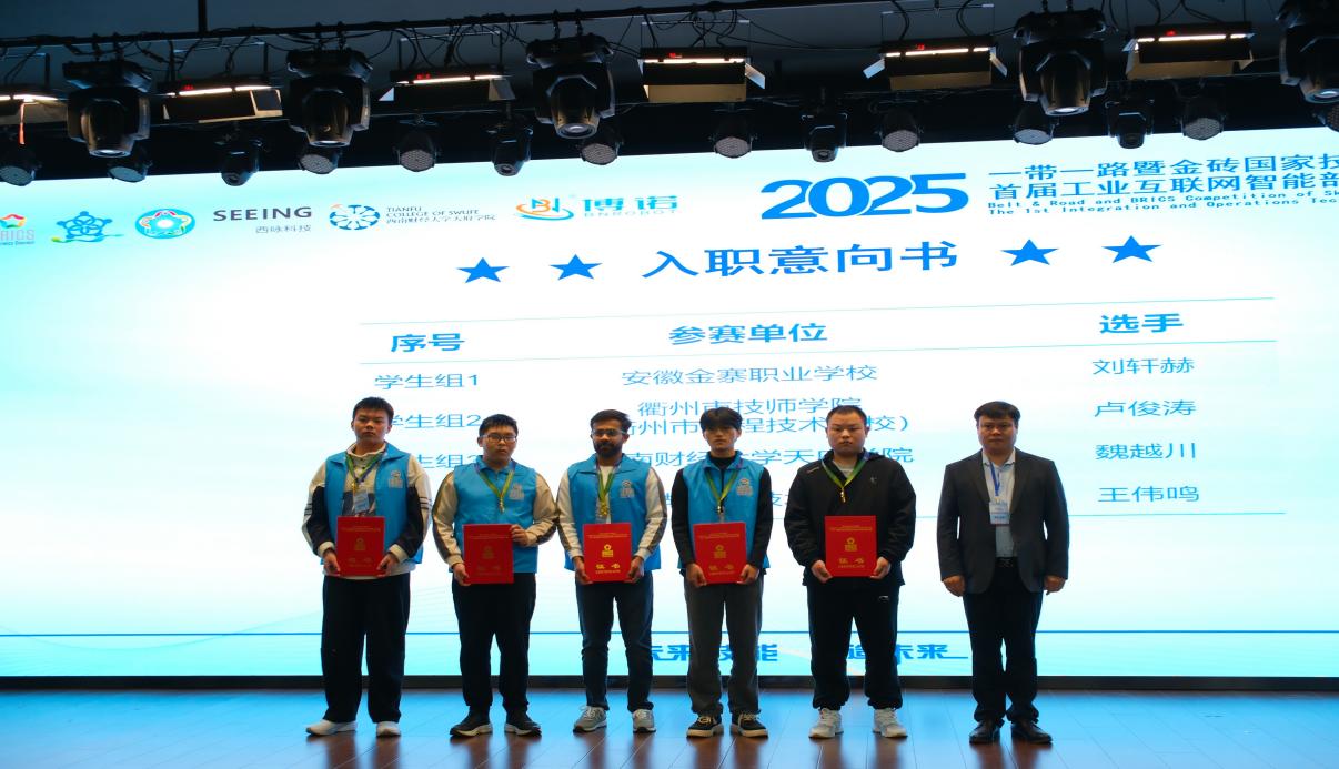 此次竞赛聚焦工业网络部署、数据采集、系统运维及数字孪生等前沿技术,旨在通过实战检验选手的综合能力,为国家选拔和储备高水平复合工业互联网技术人才。304永利集团官网入口因组织得力、保障有力,在本次大赛中荣获最佳组织奖和竞赛支持奖,这充分肯定了学院在赛事组织、参赛指导、竞赛支持等全方面的突出贡献。