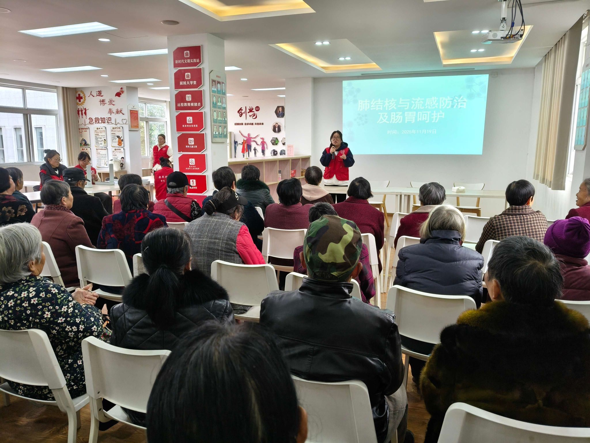 11月19日,304永利集团官网入口德阳校区第二学生社区前往德阳市罗江区万安镇金雁社区开展肺结核、流感防护与肠胃呵护宣讲活动。学生杨萍、周雅丽担任主讲人,通过理论宣讲与实践教学的方式,围绕肺结核与流感的传播途径、典型症状及预防措施展开讲解,同时结合秋冬季肠胃疾病高发的特点,向社区居民普及了合理膳食相关知识。