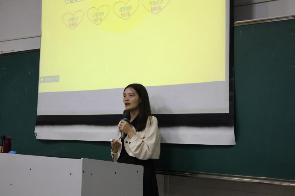 培训中,黄丹从心理委员的角色定位、工作职责与原则、心理健康与心理危机等方面进行了详细讲解。其指出心理委员要对自己的岗位有清晰的认识,要努力成为班级心理健康知识的传播者、心理活动的组织者、重要信息的传达者以及同辈交流的倾听者。在工作中,心理委员要坚持保密原则、积极求助原则、实事求是原则和保持价值中立原则,切记随意对他人的观点进行评判。在生活中,心理委员要加强学习,要理解并掌握大学生心理健康的判定标准以及大学生心理危机的识别与处理方法。黄丹强调心理委员发现学