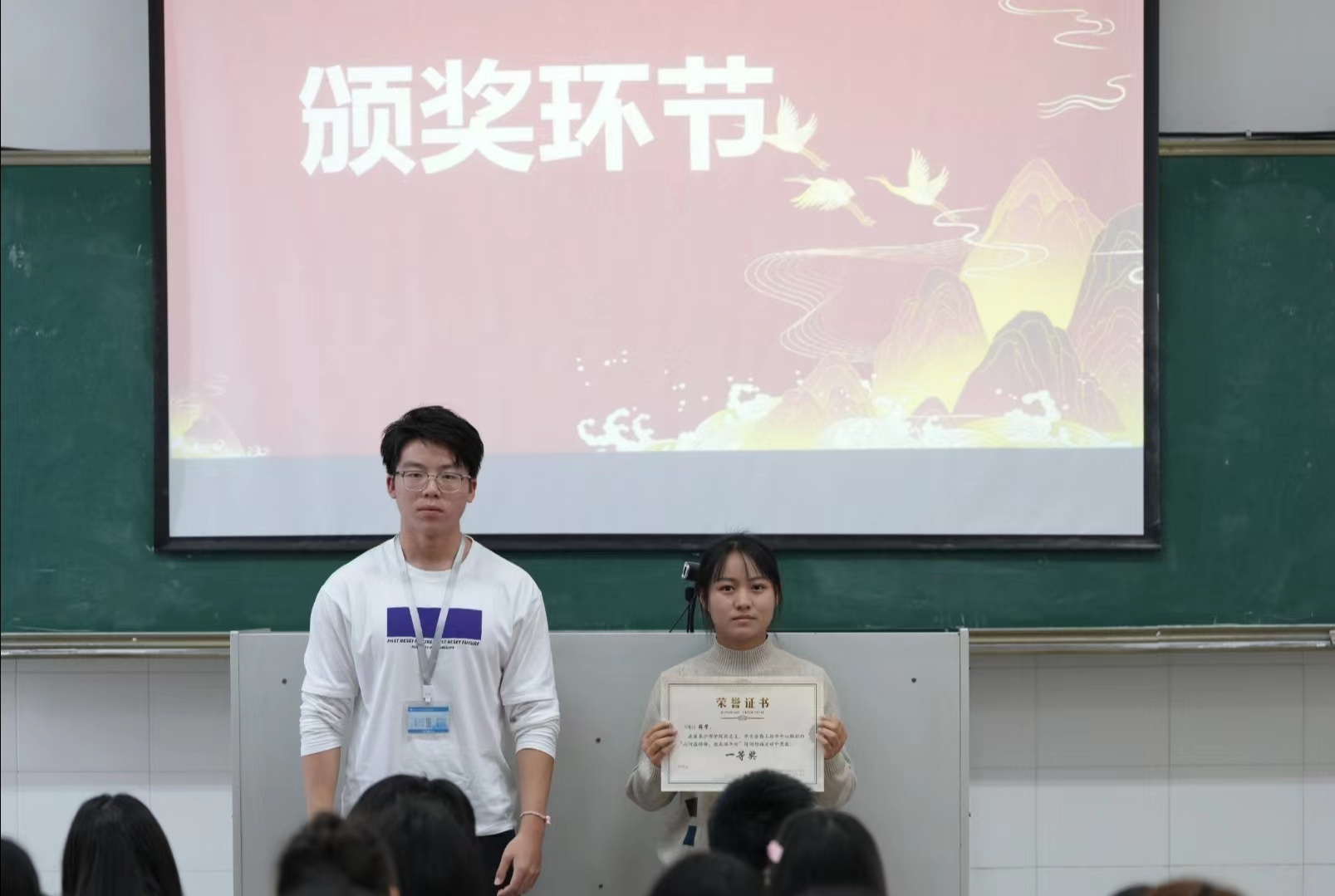 线下诗词朗诵决赛于16日在东区241教室举行,由宋芮锐同学主持,学院团总支、学生会干部王国维、向家乐、杨祖敏、侯虹君担任评委。决赛现场,选手们声情并茂地诵读一篇篇经典诗词,带领现场观众重温峥嵘岁月。他们以磅礴的气势和激昂的语言,充分表达了对祖国的无限热爱。经过激烈角逐,最终评选出一等奖1名,二等奖2名,三等奖3名。其中陈馨怡同学带来原创作品《盛世之中华》,荣获比赛一等奖。