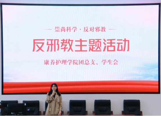 5月4日中午,“崇尚科学·反对邪教”主题班会宣讲在成都校区东区238教室开展,康养护理学院团总支、学生会指导老师李翰文主讲,各班级宣传委员积极参加。李翰文以真实案例作为话题导入,详细讲解了邪教对于家庭和社会的危害,让广大学生对邪教“反人类、反社会、反科学”的本质有了清晰认识,倡导他们在日常生活中对邪教思想做到“不听、不信、不传播”。