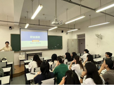 随后,吴帅尚薇从诚信、公正、谨慎等职业道德原则出发,深入浅出地阐述了它们在职场中的重要性,并鼓励同学们要将这些原则内化于心、外化于行,成为自己职业生涯中不可或缺的指南针。她强调,职业道德不仅是个人品质的体现,更是企业和行业形象的窗口,在实习期间,大家要时刻保持高度的职业自律,以良好的职业形象赢得社会的认可和尊重。