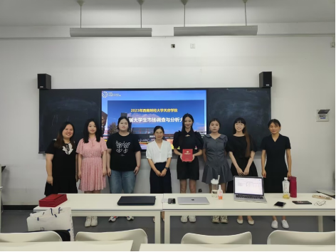 比赛中,各小组同学充分发挥课程所学,并针对社会经济热点问题展示了各具特色的数据收集与分析结果,例如新能源汽车市场调查、大学生志愿服务情况调查、不同专业对大数据使用的差异性等。