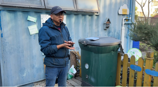 交流结束后,四叶草堂相关负责人苏老师与霍老师分别带领学生小组对智创农园进行参观学习。他们为同学们讲解了农园中的各种植物,同时也讲解了在农园中种植的小技巧以及防虫的装置。创智农园通过城市社区里的农园种植沟通邻里关系,是城市中一道独特的绿色风景线。创意十足的农业园区深深吸引着师生,让师生们在喧嚣的城市中感受到了绿色的气息。参观结束后,同学们根据分组依次进行了豌豆架搭建、树莓架搭建、清扫落叶、石子路界线清理以及植物识别数据采集,通过劳动更好地了解了社区花园理念的实践成果以及创智农园中各种植物的习性。