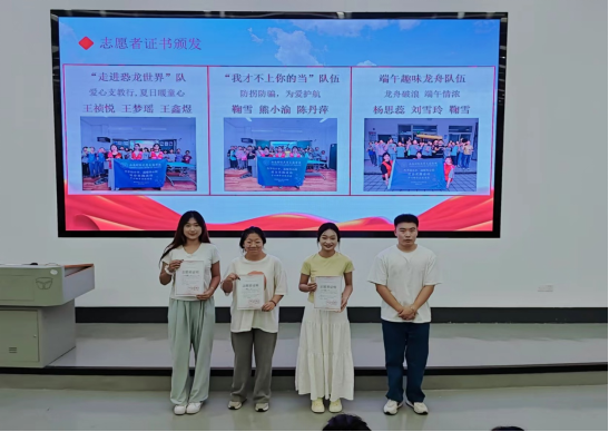 典礼开始,叶春平发表致辞,高度赞扬了参与支教活动的同学们敢为人先的勇气和无私奉献的精神。典礼上,颁奖嘉宾依次为支教活动中的优秀志愿者们分别颁发志愿时长证明、优秀志愿者、优秀组织者三个荣誉奖项,以表彰他们在支教过程中所展现的卓越品质和贡献。以奉献之犁,深耕青春,志愿者们以无数微光汇聚时代暖流,彰显了支教活动的温度和高度。三尺讲台,承载了许多人的执着与梦想,播撒着阳光与希望。支教活动不仅仅是知识的传递,更是同孩子们心灵上的触碰与慰藉。志愿者们在支教的道路上用爱心和耐心播撒知识的种子,不辞辛劳,倾其所能地为鄢家镇的孩子们提供丰富多彩的教育体验,用实际行动践行着“奉献、友爱、互助、进步”的支教精神,让爱的种子在孩子们的心中萌芽。