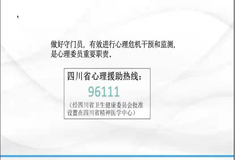 为进一步普及心理健康知识,提高在校大学生心理健康水平,增强学生的心理保健意识,及时为学生疏通心理,排解压力,指引方向,6月14日,智能金融学院于线上开展了“做好守门员:如何开展危机干预与监测”心理健康培训讲座。此次讲座由智能金融学院团总支素质拓展分中心指导老师杨悦主讲,成绵两地大一至大三各班级心理委员共同参与。