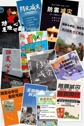 活动前期,工作人员通过拍摄视频和照片的形式宣传普及防震减灾知识。活动过程中,同学们踊跃报名,积极参与,充分发挥自己的想象力,设计绘制了“防灾减灾”主题海报,海报内容新颖、通俗易懂、色彩鲜明、画面精美,兼具科学性、知识性、趣味性、艺术性,以文字与图画相结合的方式,更好地起到了防震减灾知识的宣传和普及。