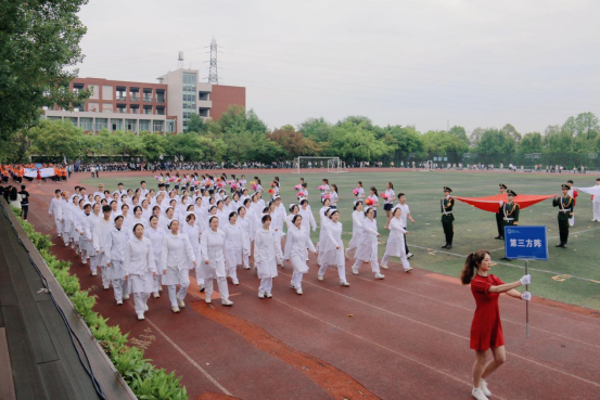 运动会开幕式上,康养护理学院3个代表方阵分别身着运动服、院服和护士服,充分展现康养学子朝气蓬勃、自信阳光的风采。