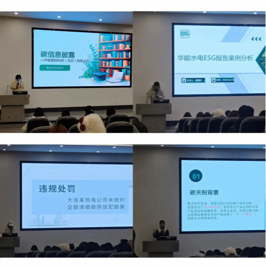 随后,ESG学习小组从碳信息披露、违规处罚、碳关税(国内外)、ESG四个方面进行了案例展示,通过案例展示,学生可以将理论知识与实际案例相结合,更深刻地理解企业社会责任,培养社会责任感,这对于培养具有全球视野和社会责任感的新一代人才具有重要意义。