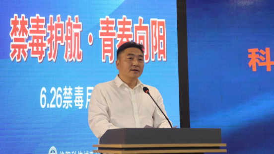 活动伊始,科新区党工委委员、管委会副主任、区禁毒委主任刘建华发表致辞。他从维护社会稳定、守护家庭幸福、保障个人健康等多个维度深入阐释,强调禁毒工作是关乎国家未来、民族希望的系统性工程,为整场活动奠定了严肃而深刻的基调。